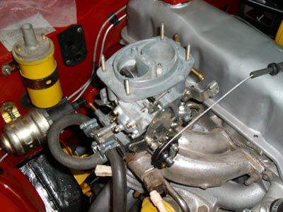 Далее была установлена приемная труба («штаны») и карбюратор (за что отдельная благодарность Konst’у), а так же полностью настроен механизм привода карбюратора: отрегулирована педаль газа, установлен тросик от М2141 (под Солекс). Т.к. он оказался наиболее подходящий по размеру.