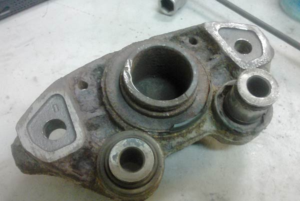 С направляющими втулками пришлось повозиться. На каждом суппорте их по две и в данном случае одна ходила нормально, а вторая (на обоих суппортах) была заржавевшая настолько, что с большим трудом выбивалась молотком! Разумеется эти втулки необходимо было заменить.