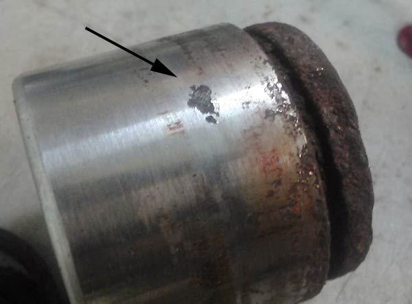 Как видно на фото №3 поршень суппорта сильно «поеден» коррозией и уже имеет дефект в рабочей области, поэтому не пригоден к дальнейшему использованию.
