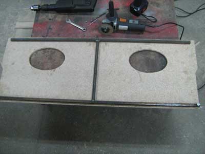 Из квадрат-трубы (15*15 мм) делаем каркас прочности в виде буквы «Н» — этого более чем достаточно, что бы полка не прогибалась ни под каким весом, и не дребезжала! Готовый каркас крепится к ДСП посредством саморезов.
