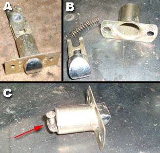 - На фото [A] - "Собачка" от обычного межкомнатного дверного замка.